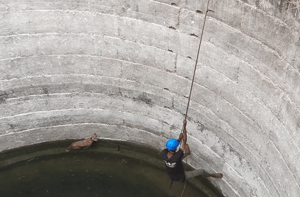 Rescuing an animal from a deep well isn’t simple.