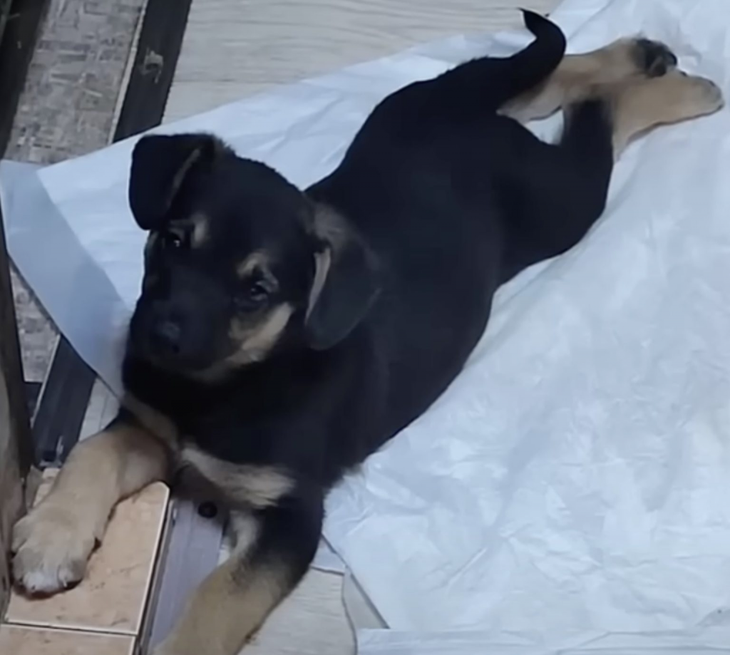 One slow roll forward. Then another. Straight toward Timosha. Her tail wagged. Tentative at first, then confident. The puppy rushed to her, bouncing with excitement. Cheers followed. Tears too.