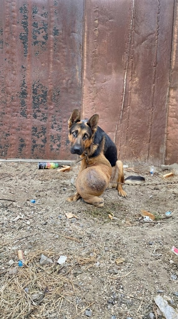 For years Jordan lived in the same spot at the back of an aging home. A short metal chain fixed him to a post and defined the borders of his entire existence. He could stand turn and lie down but never leave. Days passed without variety. Nights arrived without comfort. Seasons changed but nothing else did.
