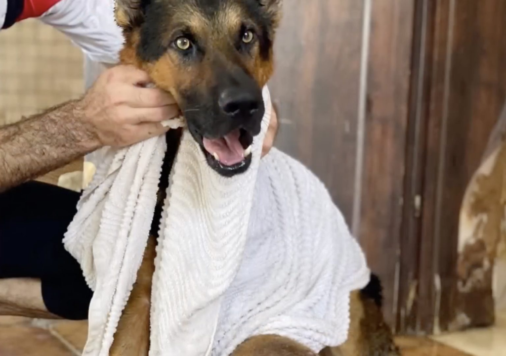 Recovery took time. As a three legged dog Jordan had to relearn balance and confidence. He approached each day with the same quiet determination that had carried him through captivity.