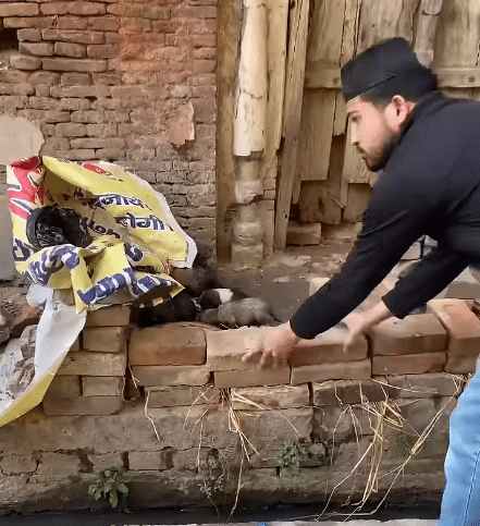 Bricks were gathered and placed carefully, forming a barrier around the edge of the wall.