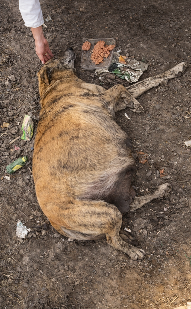 She lay along a forgotten stretch of roadside where trash gathered and cars rushed past without slowing. Her body was thin, her breathing shallow, and her swollen belly told the truth she could not explain. She was expecting. Very soon. Yet she had been left there anyway. No shelter. No food. No familiar voice. Just the quiet ache of exhaustion and the instinct to protect the lives growing inside her.