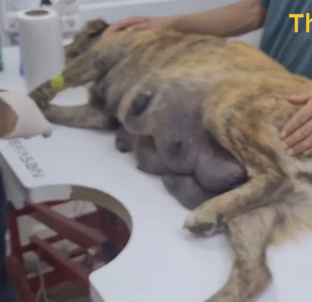 During the drive to the veterinary clinic, she stayed awake the entire time. Every bump in the road earned a soft sound from her throat, but she never panicked. Deep inside her, something stronger than fear kept her focused. She needed to hold on. Not just for herself, but for the puppies she carried.