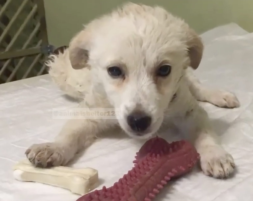 At the rescue shelter, the puppy was given a name. Luna. A name that felt fitting for a soul that had endured darkness and still carried quiet light within her. Structure and consistency quickly became part of her world. Meals arrived at the same time each day. Clean water was always available. Gentle hands brushed her coat, slowly restoring warmth and comfort she had been missing for far too long.