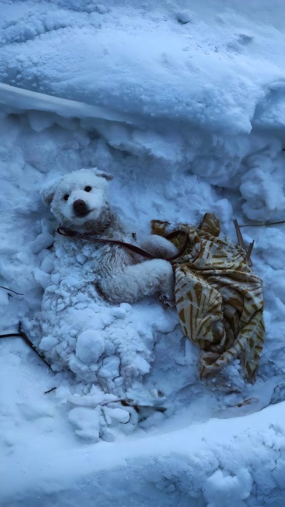 He rushed forward, pushing snow aside with bare hands. There, lying helpless and rigid, was a white dog. His body was stiff with cold, his fur frozen solid, his breathing shallow and uneven. He was alive, but only just. Later, he would be called Bely.