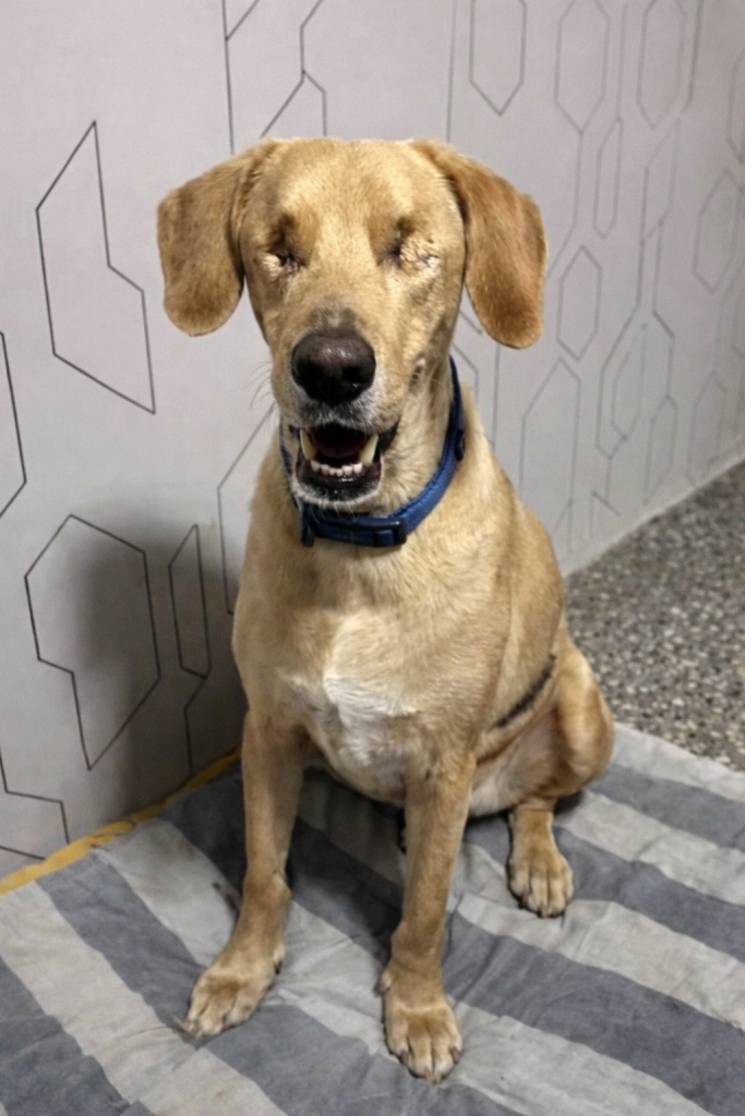 Benki was found on November 5th in Lara, Venezuela, blind and missing a hind leg after likely being discarded from a breeding operation. Although physically injured, he had no internal damage, giving him a strong chance at recovery. Through patient sound training, consistent care, and structured rehabilitation, Benki regained confidence and mobility. Today, he is adapting remarkably well and searching for a loving home prepared to provide ongoing support. His journey demonstrates that with proper care, resilience and trust can return—even after profound hardship.