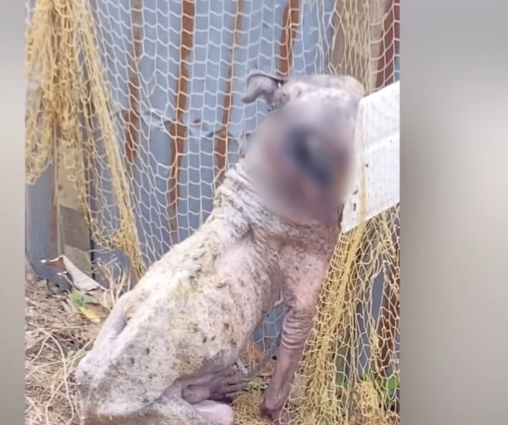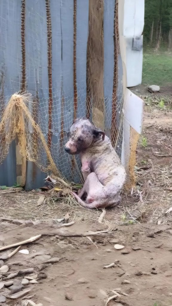 A short rope circled his neck, limiting his movement to just a few steps. His body was thin and his fur tangled with dirt, the kind of neglect that does not happen overnight. He did not bark for attention. He did not fight the rope or cry out in fear. Instead, he sat quietly, curled inward, trying to take up as little space as possible.