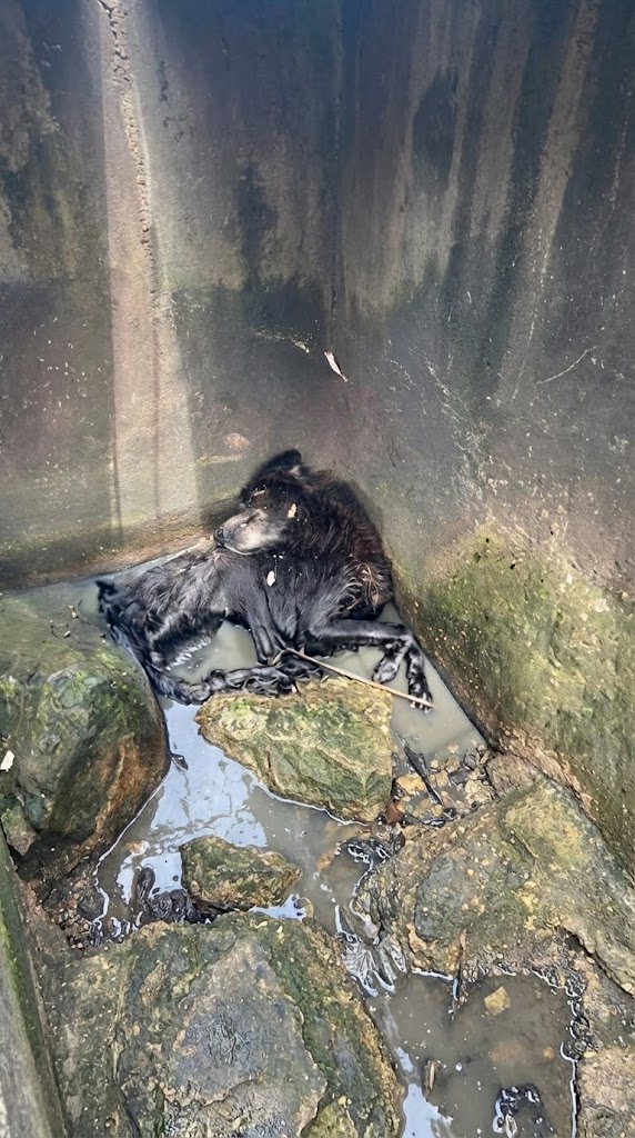 Inside the sewer lay a dog who had almost disappeared from the world. His body was soaked through and shivering. Dirty water clung to his fur and the smell of neglect filled the air. Ticks crawled freely across his skin feeding on a body already pushed past its limits.