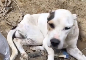 She was rushed to a veterinary clinic where the full extent of her condition came into focus. Aisha was severely malnourished and dangerously dehydrated. Her muscles were so weak she could not stand on her own. Tests revealed head trauma that had affected her balance and ability to walk. No one could say for certain how it happened, but the damage was undeniable. Beyond the physical injuries, her emotional state was just as concerning. She appeared withdrawn, grieving both the loss of her puppies and the betrayal of the humans she once trusted.