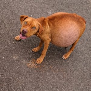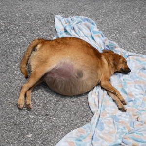 Left near the trash, her belly heavy, she quietly waited for someone to notice her