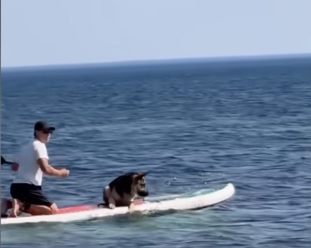 He learned to walk through forest trails without pulling back. He discovered the joy of swimming in cool water. He curled up beside his people on quiet camping nights beneath open skies.