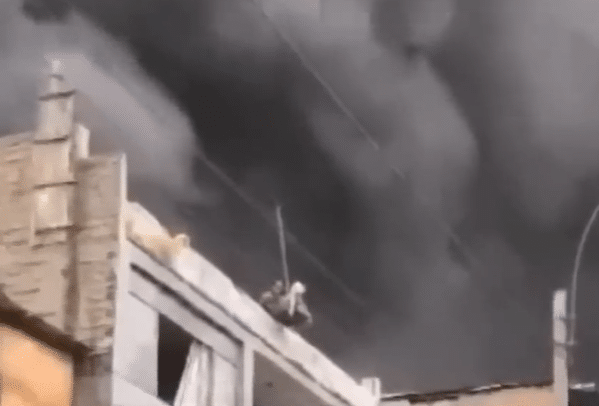 Smoke surrounded the rooftop.
