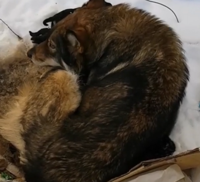 Cradled by Winters Chill A Mother Dogs Fight to Save Her Puppies