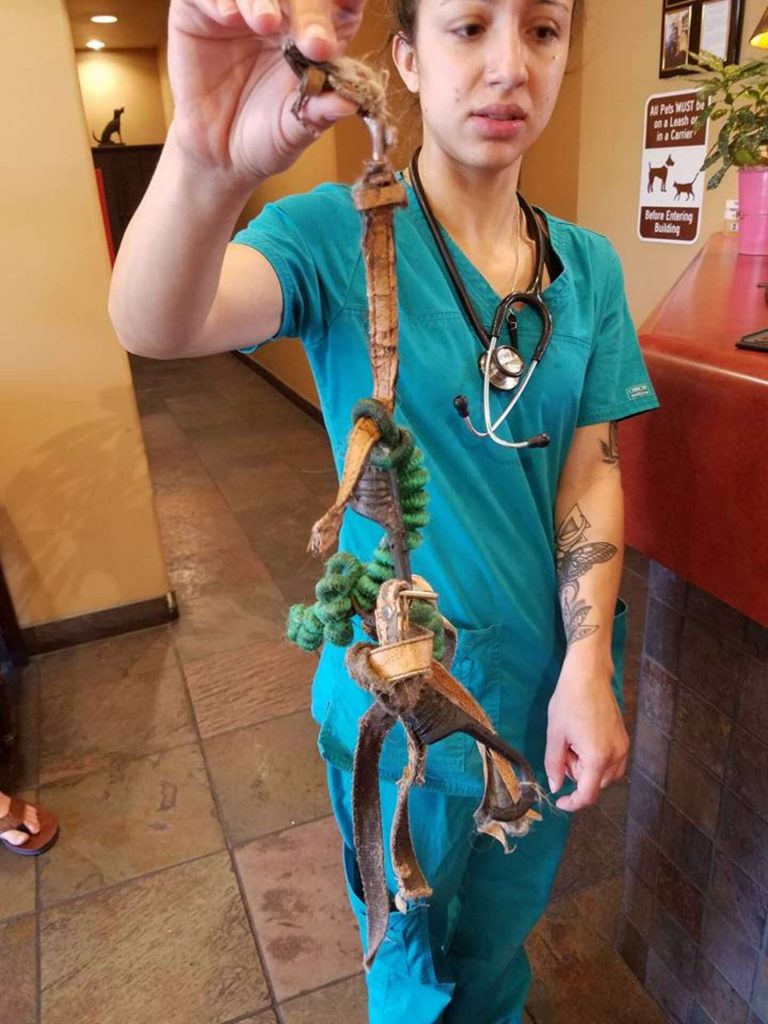 A volunteer drove out to retrieve Autumn and rushed her straight to Monte Vista Small Animal Hospital. The veterinary staff was already waiting, prepared for the worst but hoping for the best. As soon as Autumn arrived, they carefully cut away the collar that had caused so much damage. What they saw underneath confirmed how serious her situation was.