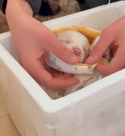 During this time, he noticed a small injury at the tip of the puppy’s tail—a sign of how long he had been exposed to the cold.