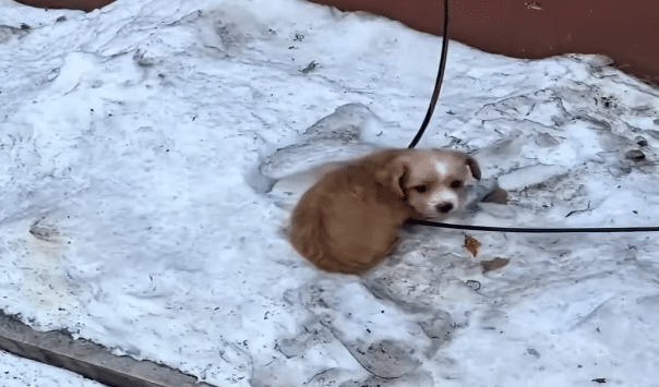 The puppy had curled himself into a tight ball, instinctively trying to preserve body heat. His trembling body told the story of the cold more clearly than words ever could.