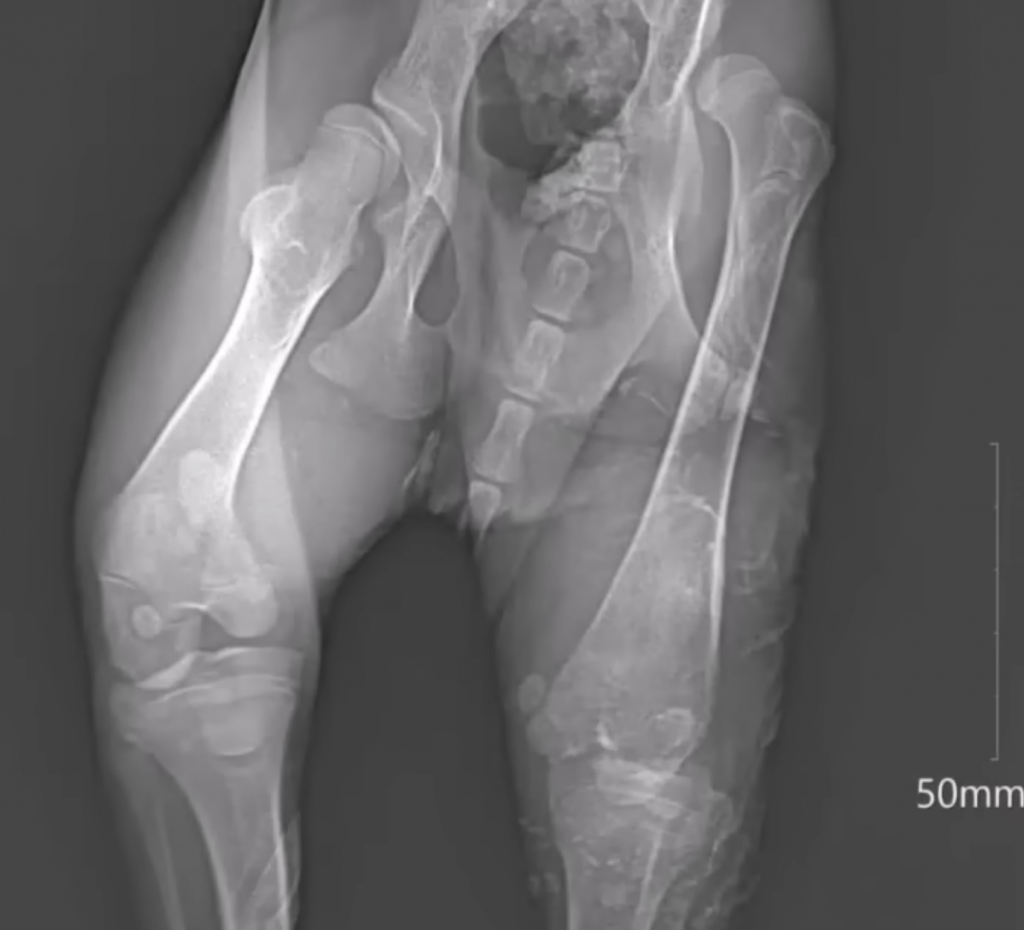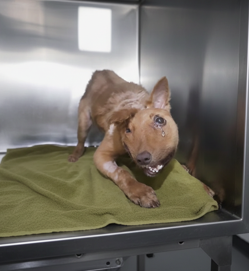 At the clinic, the veterinary team carefully examined him. What they found told a hard story. Bonbon had old fractures and physical deformities, signs of long term suffering that had gone unnoticed. His body was fragile, and recovery would take time. There were no shortcuts. No quick fixes.