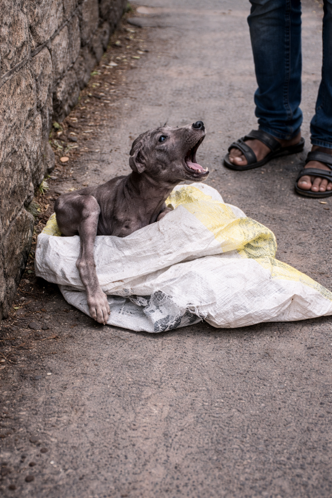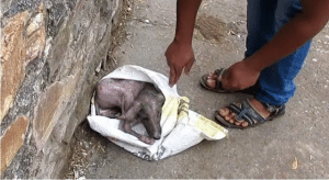 He was just a tiny puppy, injured and exhausted, hiding beneath a discarded bag on the ground. To most people walking past, it looked like trash caught in the wind. But underneath that crumpled layer of plastic and fabric was a living creature doing the only thing he knew how to do—stay invisible.