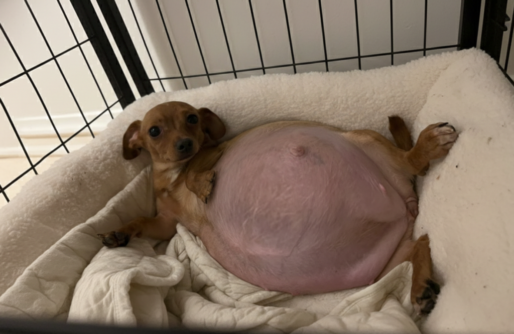 During her initial examination, the veterinary team quickly realized the situation was critical. Lily was heavily pregnant, carrying five fully developed puppies. Her small body strained under the weight and stress of pregnancy, and she no longer had the strength to deliver safely on her own. Imaging confirmed the worst fear. Her labor had stalled, and time was running out.