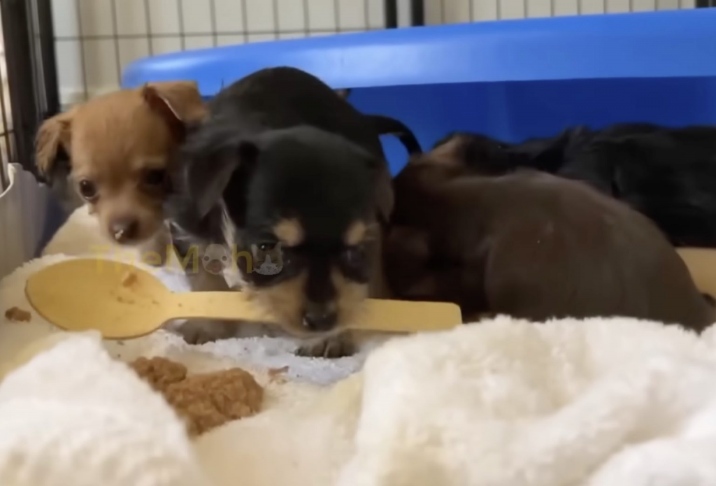 Although she was too weak to nurse her puppies herself, her devotion never wavered. She watched closely as they were bottle fed, her eyes following every movement. Her tail moved softly whenever they were near. Her presence alone seemed to calm them, as if they knew she was still protecting them in her own way.
