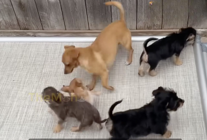 Moments later, five tiny puppies entered the world. Four boys and one girl. Each one alive, breathing, and full of promise. It was the kind of moment that makes everyone pause, hearts full of relief and awe. But Lily’s journey was far from over.
