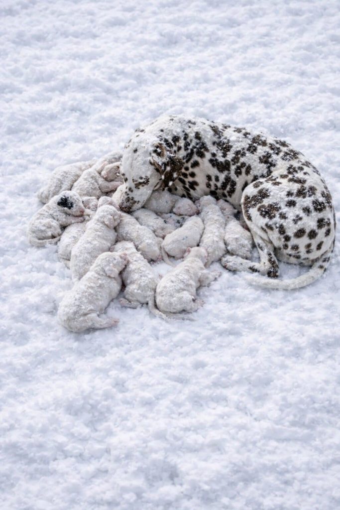 Mama Pup, a pregnant Dalmatian dog, arrived at a rescue facility about thirty days into pregnancy after her previous family sought help providing proper care. Volunteers created a calm foster environment with veterinary monitoring, nutritious meals, and comfortable bedding to support her health. Within days, she gave birth to thirteen Dalmatian puppies and cared for them attentively from the moment they arrived. Over the following weeks, the puppies developed rapidly—opening their eyes, gaining their distinctive spots, and beginning to explore their surroundings. With careful supervision and structured socialization, they grew into energetic and healthy young dogs. By the end of their first hundred days, Mama Pup and her puppies had transformed the foster home into a lively, thriving family environment, demonstrating how compassion, responsible care, and patience can create beautiful new beginnings. 🐾