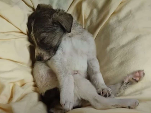 The puppy was gently lifted and wrapped in warmth. His body felt cold to the touch, dangerously so. He had little energy left, but something about him stood out. Even in that fragile state, he clung to life with quiet determination. He did not struggle. He simply held on.