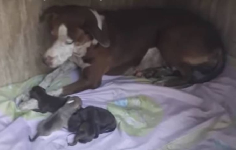 With patience and care, the mother and her puppies were transported to safety and taken to a veterinary clinic. There, the truth of her condition became clear. She was severely dehydrated and malnourished. Her body had been pushed far beyond its limits.
