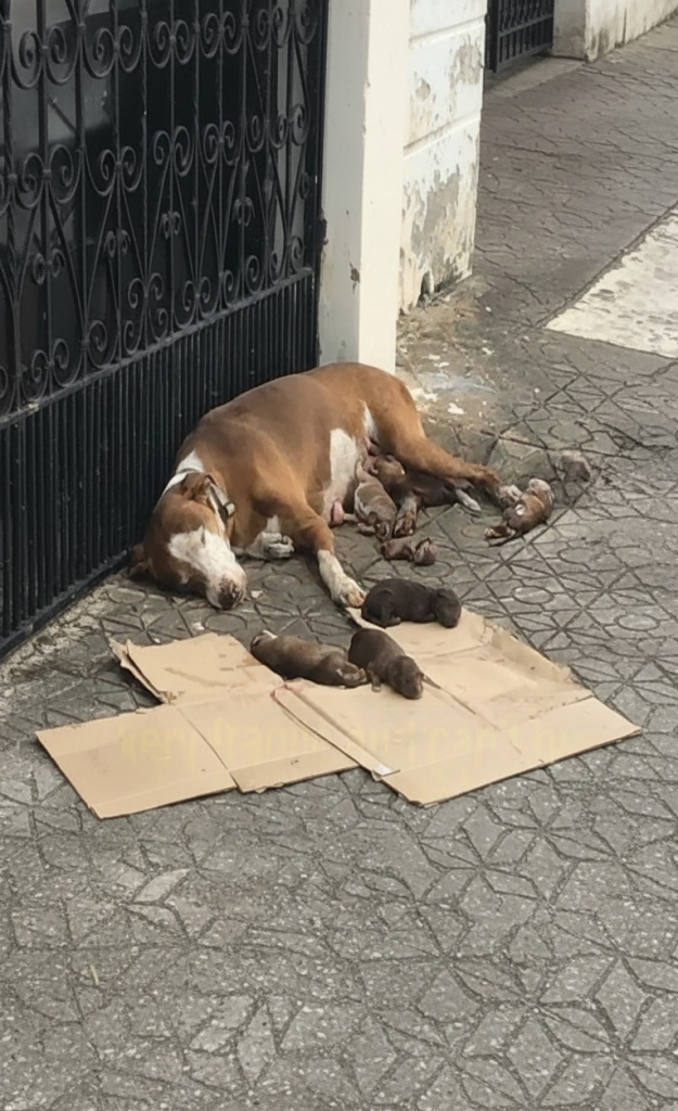 Giving birth should happen in a place filled with warmth and reassurance. For one gentle mother dog, it happened on a cold city sidewalk where survival depended on instinct, endurance, and a love stronger than fear.