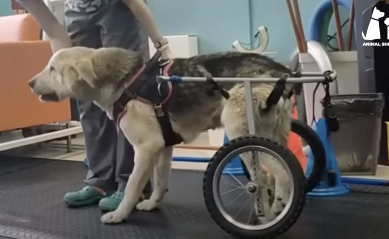 Mishka was a senior dog, his face marked by years of survival. When rescuers gently lifted him from the snow and carried him into warmth, they immediately sensed something was terribly wrong. His back legs did not respond at all. No matter how carefully they repositioned him, there was no strength. No reaction.