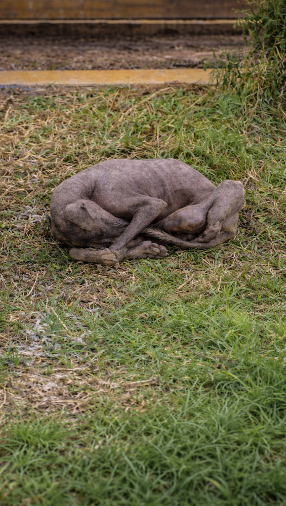 At a glance, he was easy to overlook—a thin, tired dog moving slowly through the world. His body showed signs of long hardship. His steps were cautious. His energy was low. Everything about him suggested a life that had been anything but easy.