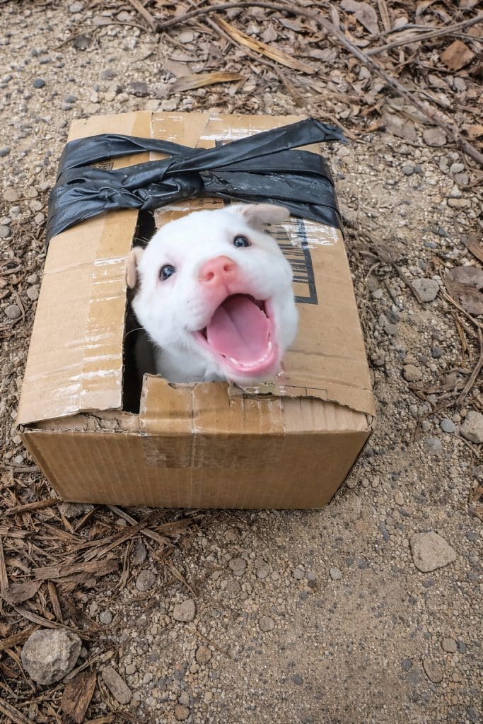 Inside the box, the puppy didn’t tremble or resist. He seemed curious. He watched the passing scenery through his little window as wind brushed past his fur. What could have been a frightening ride felt more like an adventure.