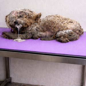When they approached him, the reality became clearer. His body showed signs of long-term neglect. He was severely underweight, and his skin was exposed, with no visible coat to protect him. Every small movement required effort. Even lifting his head seemed like a challenge.