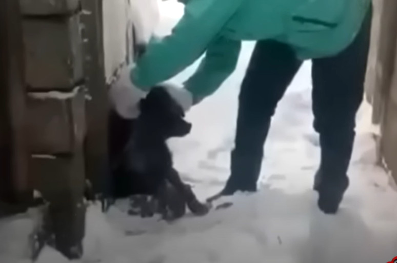 The cold had already done serious damage. Nakiyu was running out of strength. The couple tried to unclip the leash, but it was rusted shut. It would not budge.