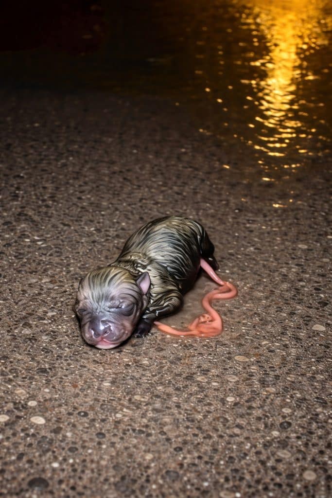 A newborn puppy.