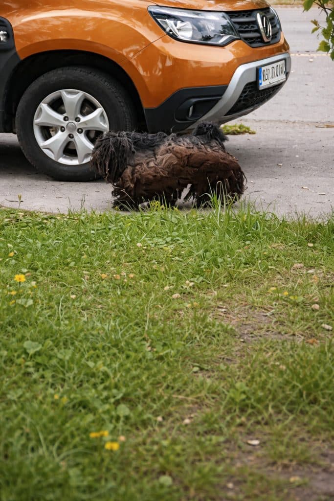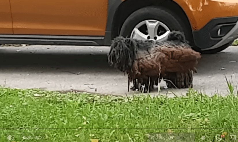 The dog’s body was covered in thick, rope-like mats of fur. These weren’t just tangles. They had hardened over time, forming dense layers that clung tightly to his body. The fur dragged close to the ground, restricting movement and making even simple actions difficult.