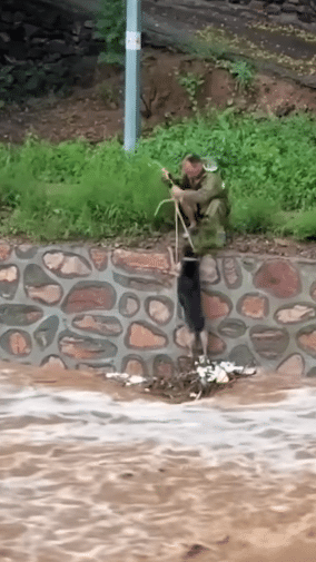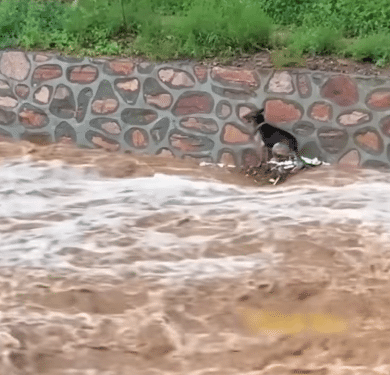 This article tells the story of a small dog trapped on a narrow rock ledge above a fast-moving flood. With no escape and danger below, the situation seemed critical until an elderly man stepped forward to help. Using only a rope and careful movements, he risked his own safety to reach the dog and pull him to solid ground. The rescue highlights the power of courage, compassion, and decisive action, showing that even in dangerous situations, one person’s willingness to help can make a life-saving difference.
