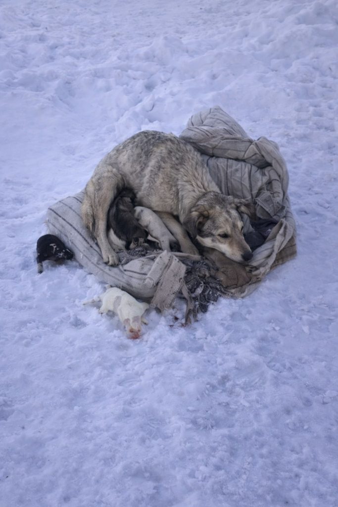 The temperature hovered low enough to freeze exposed water within minutes. Snow pressed down on fragile bodies that had barely begun to regulate their own warmth. For newborn puppies, even mild cold can be dangerous. In this environment, survival depended on something far more powerful than comfort: their mother’s unwavering protection.