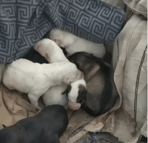 The puppies instinctively pressed against her belly, their tiny cries blending with the winter wind. They couldn’t see yet. They couldn’t walk. They relied entirely on her warmth and milk.