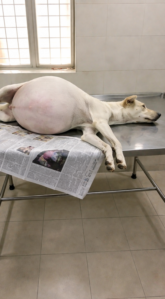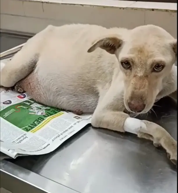 Without hesitation, we untied her and rushed her to the veterinary clinic. Every minute mattered. Her body was failing, and the swelling in her abdomen was no longer survivable without immediate intervention.