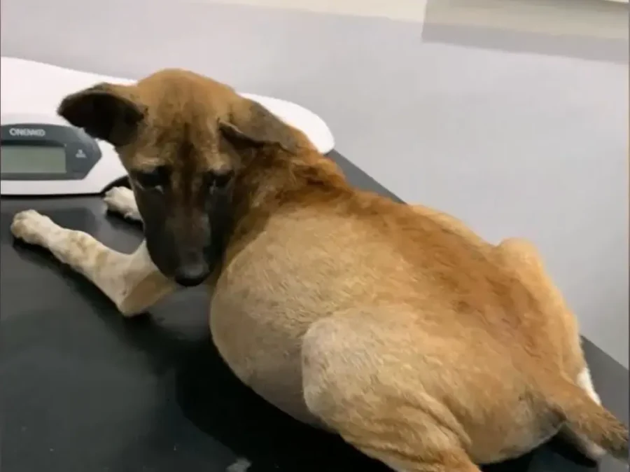 He was taken immediately from the street to safety and then rushed straight to the veterinary clinic. Every minute mattered. His breathing was labored. The pressure inside his abdomen was visibly affecting his lungs.