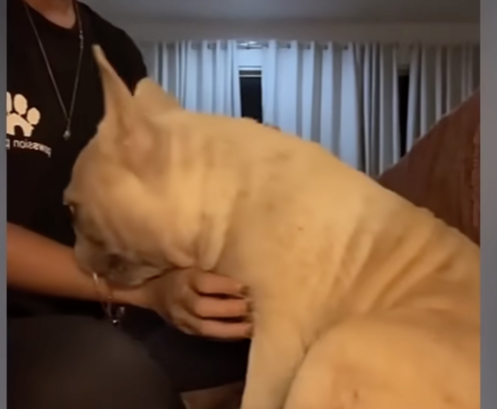 Her condition told a story without words. She was painfully thin, her ribs visible beneath dull uneven fur. Her posture carried the weight of long years without safety or comfort. This was not a dog who had been lost for a night or two. This was a dog shaped by neglect over time. Hunger had become familiar. Discomfort had become normal. Expecting nothing had become a way to survive.