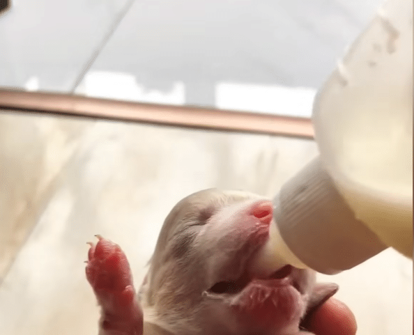 They monitored his weight daily, tracking every gram as if it were a victory. They treated small skin irritations with gentle care. They helped him digest by massaging his tiny belly—something newborn puppies cannot do alone.