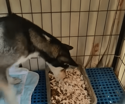 Despite her condition, the mother dog never stopped protecting her puppies.