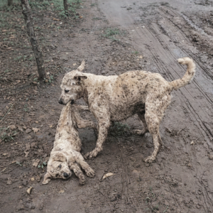 The scene opens without drama. No loud noises. No rushing crowds. Just damp, uneven ground and a white mother dog standing beside her puppy. The earth beneath…