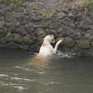 Slipping on Stone, Running Out of Strength A White Dog’s Narrow Escape