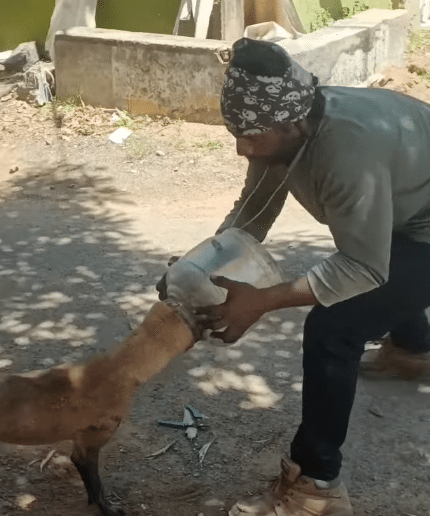 A stray dog was found wandering with a plastic container tightly stuck around his head, preventing him from seeing, eating, or breathing properly. A rescue team, along with a local resident, worked carefully and patiently to remove the container using precise tools and gentle handling. Once freed, the dog immediately regained his energy and ran off, clearly relieved. This story highlights the importance of awareness, responsible waste disposal, and compassionate action, showing how small efforts can save lives in meaningful ways.
