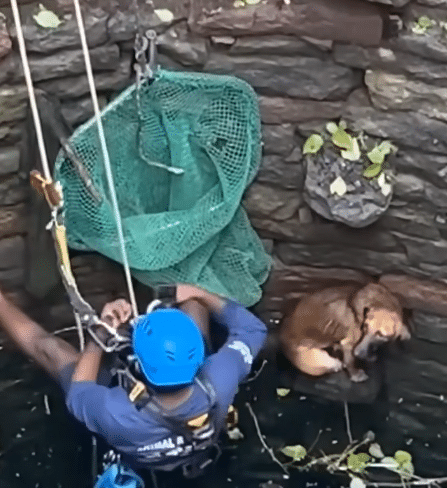This article tells the story of a dog trapped at the bottom of an old, water-filled well, unable to escape due to the narrow and slippery conditions. Perched on a small ledge above the water, the dog faced a difficult and dangerous situation. A rescue team arrived promptly, carefully planning and executing a safe retrieval using ropes and a rescue net. With calm and patient handling, the dog was successfully lifted out of the well and returned to solid ground without serious injury. The story highlights the importance of awareness, timely intervention, and teamwork, showing how coordinated efforts and compassion can transform a risky situation into a moment of hope and safety.