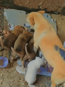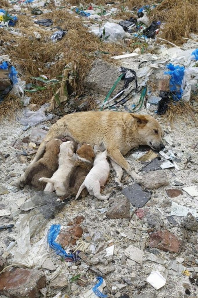 Hidden among discarded furniture, crumbling walls, and piles of waste lived a thin golden-colored stray dog and her newborn puppies. It wasn’t a place anyone would choose to stay. Yet for this mother, it was the only place left.