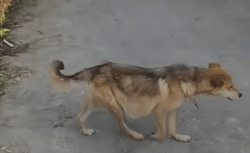 On an ordinary street in a small town, where life moved at its usual pace, a fragile dog appeared—thin, exhausted, and carrying a quiet weight that went far beyond what the eye could see. She didn’t bark for attention. She didn’t run toward people or beg for food.